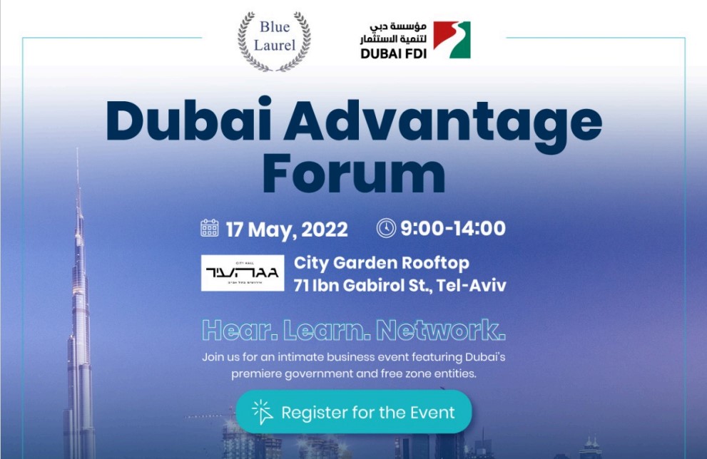 ב- 16-17.05.2022 מגיע ארצה מנכ"ל רשות ההשקעות של דובאי, פאהד אל גרגאווי, ועימו מגיעים בכירים מרשות הבריאות של דובאי, ומאזורי סחר חופשי שונים בהם: